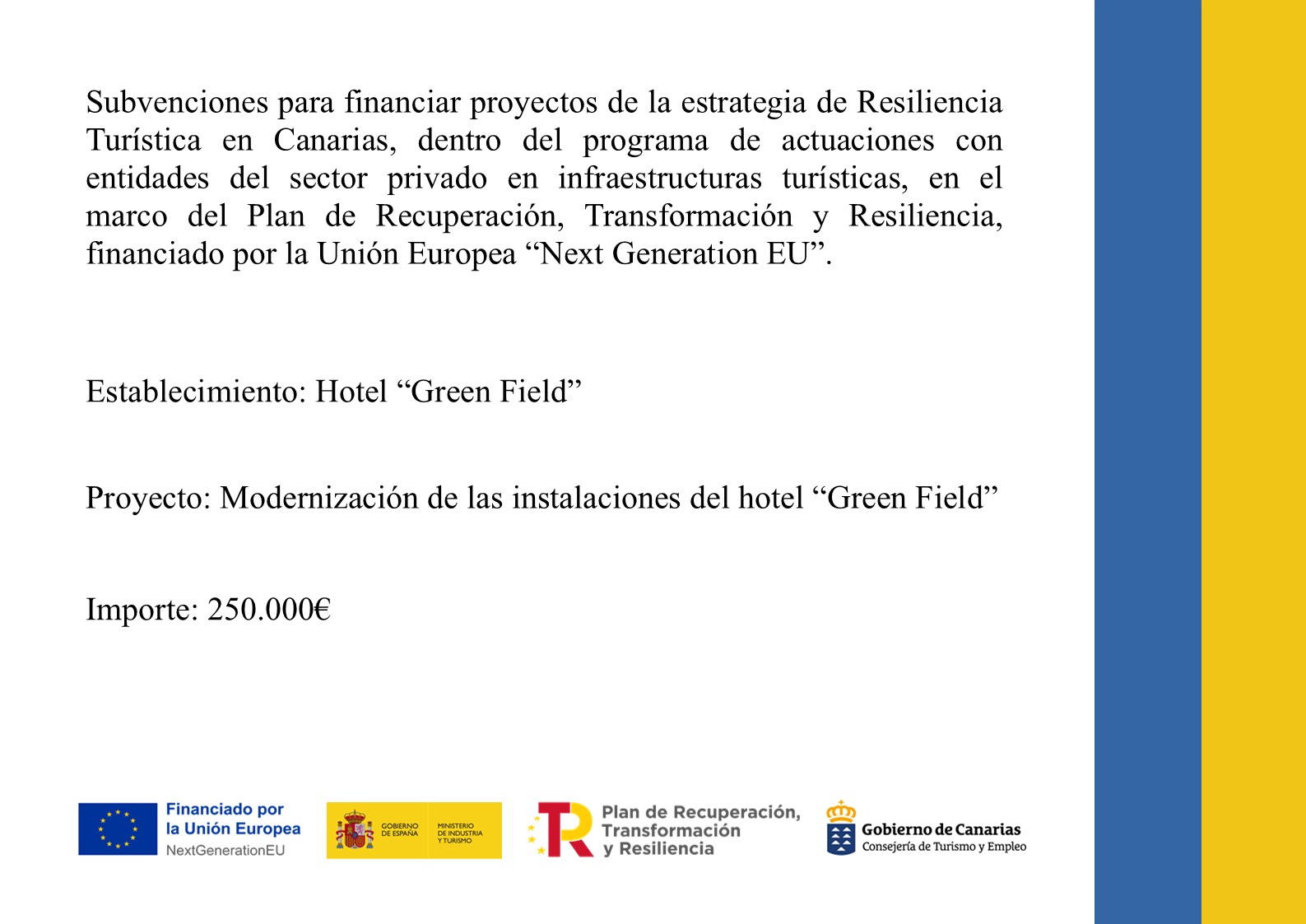 The Superior Studio, at the Hotel Green Field, in Playa del Inglés, with a size of 33 m2 is the perfect accommodation for families or small groups of friends. These Top Units are located on the front of the building and on the ground floor with direct access to the pool. It can hold up to 3 adults or 2 adults and 2 small children.